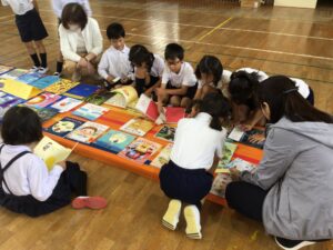 様々な分類の本がずらっと並び、子どもたちもとてもワクワク!