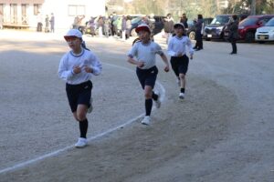 みんなと一緒に走るので順位はつきますが、持久走は自分の記録との勝負です。保護者や地域のみなさんの応援の力でみんな一生懸命走りきることができました。