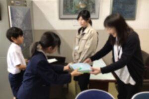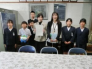 集まった募金5,311円は、28日(月)に光市緑化推進協議会の方に来ていただき、校長室で贈呈しました。